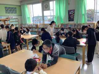 クリスマス飾りを作る企画が、今週けやきタイムに行われています。なんと、毎日、図書室に通って作っている子も多いです。ですから、今日も大盛況です。(密を避けるために、30人ずつ入室して作れるようになっています)