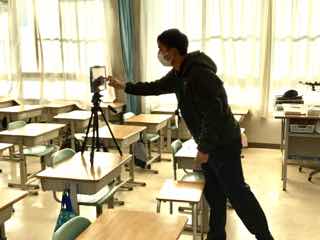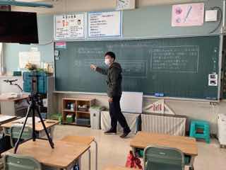 担任の先生は、黒板のところで説明をして、問題を解いた後は、発言者のマイクをオンにして、できるだけいつも通りの授業を心がけていました。