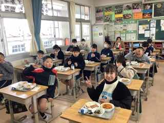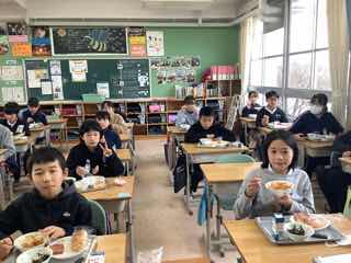 ハムソテーや、米粉パンが人気で、まずはそのお代わりジャンケンをしてから、写真を撮りました。