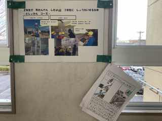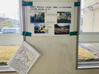1年生の廊下、図書室の廊下には、2年生の町たんけんのまとめが掲示されています。
