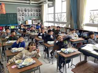 放送が始まったタイミングで、いただきますだったので、放送が聞こえるように声のボリュームを下げていましたよ。