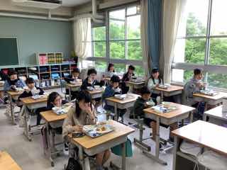 いつも元気なクラスで、自分たちの力で配膳をがんばって進めていました。