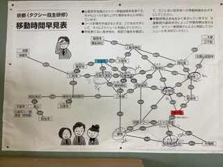 教室の後ろには、修学旅行のタクシー研修の行き先が記されていました。