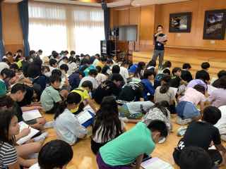 子供たちは、説明を聞きながら、自分のしおりに赤ペンで注意事項を書き込んでいました。