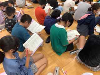 5時間目は、来週の21日、22日の自然ふれあい学習に向けて、5年生全員でしおりの確認です。