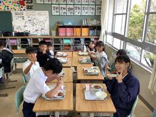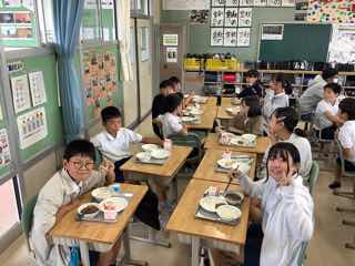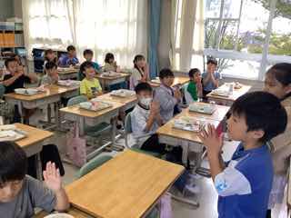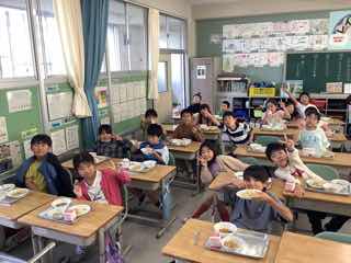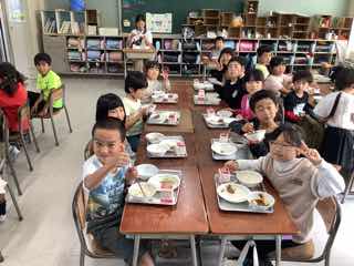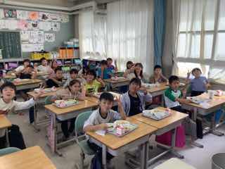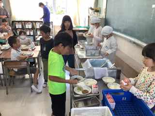 給食当番さんが、テキパキと動き、手早く盛り付けていて感心しました。