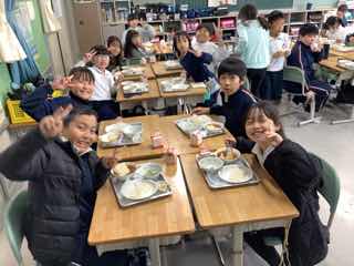 当番さんの中でも、役割分担があって、テキパキ配膳です。