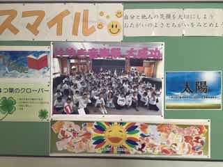 4年生が通る階段の踊り場には、けやき音楽祭の日に撮った写真が掲示されています。