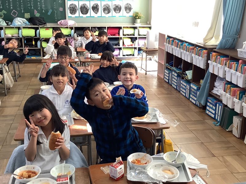いただきますの後に、先生からカップケーキにかけて食べる話がありました。