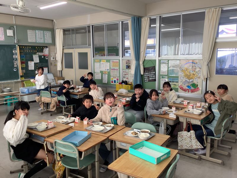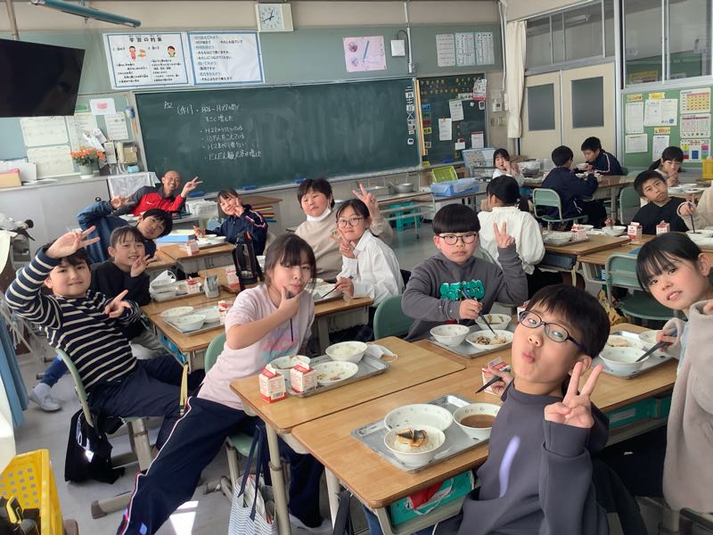 今日は、4の1におじゃましました。ご飯以外は、全て配り終えていましたよ。ゆっくりと会食です。