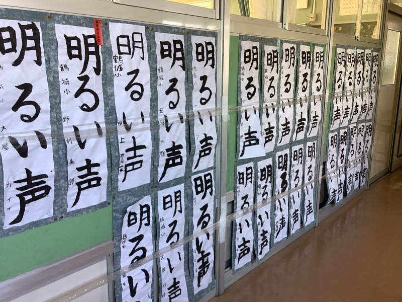 廊下には、競書会の作品が雲華紙に貼って掲示されていました。文字も見やすく、整っていますね。