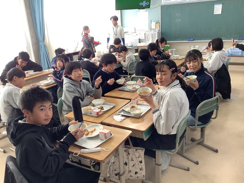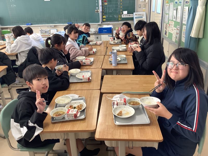 美味しく出来上がった給食を食べている様子を撮りに、今日は6の1におじゃましました。