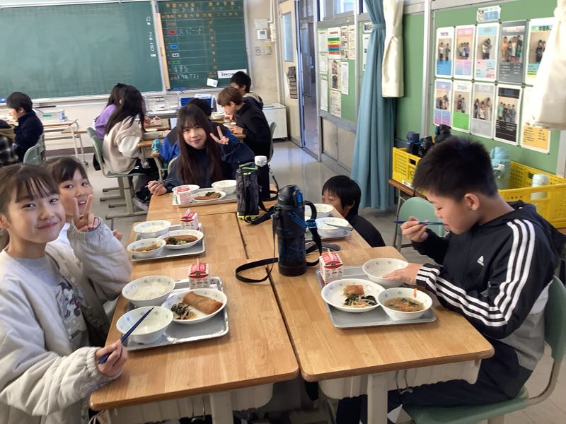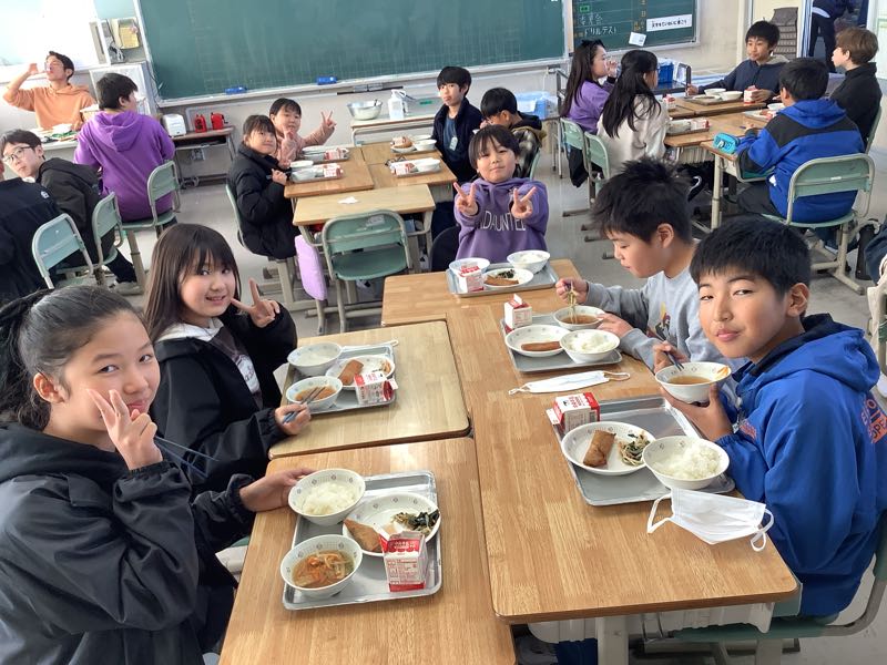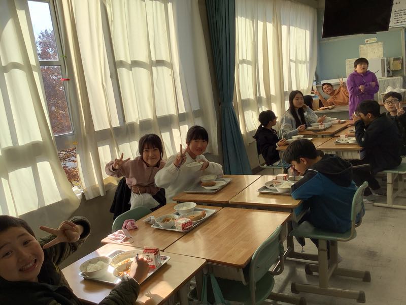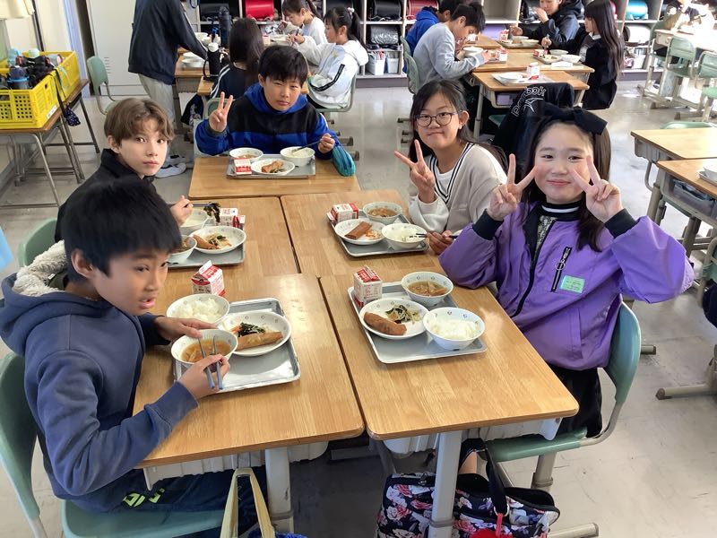 今日は、5の1におじゃましました。教室に向かうまで、他のクラスはまだ準備中が多かったですが、このクラスは早々と会食していましたよ。