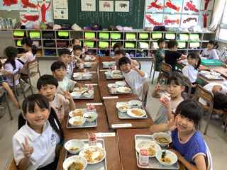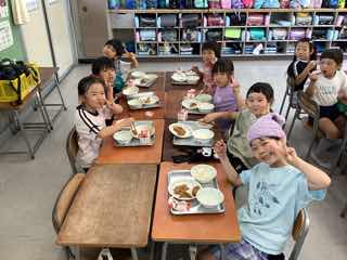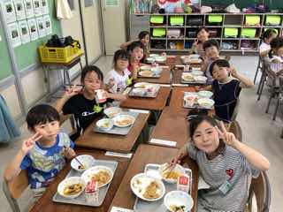 ちょうどぎょうざじゃんけんをするところで、子供たちの表情が違います。