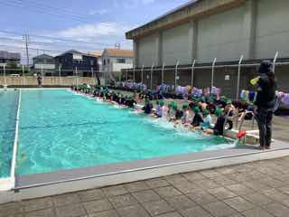 2年生は小プールで、泳ぐか歩くかで、今年初のプールを楽しみました。