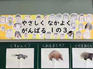学級目標は、「やさしく なかよく がんばる 1の3」です。