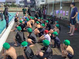 1年生は、シャワーの浴び方や、プールサイドでの待ち方、バディシステムなど、話を聞きました。
