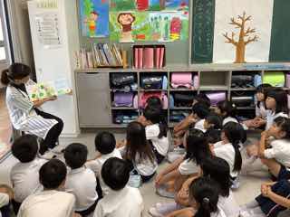 「今日何食べてきたの」「メロンパン好き」など、子供たちと対話しながら、和やかな雰囲気で絵本の世界に入り、お話を聞くことができました。