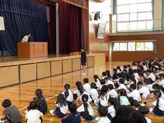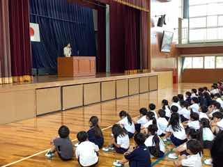 校長先生からは、先月の運動会の経験を生かし、①自分の意見を思いきって言えるようにしよう②いろいろな本を読み、本に親しもう③おそろいの心をもつ仲間作りをしようというお話がありました。