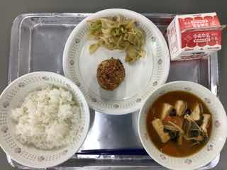 今日のメニューは、手作りさつま揚げフライ、胡麻和え、生揚げと小松菜の味噌汁です。手作りさつま揚げフライは、白身の魚のすり身に野菜を混ぜて、パン粉をつけて揚げています。真っ白なすり身と人参、ネギ、コーンが色鮮やかで、パン粉のサクサク感も美味しさに一役かっています。
