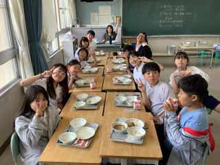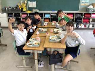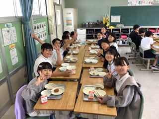 今日は6の2におじゃましました。少し遅くおじゃましたので、食べ終わっている子もいました。