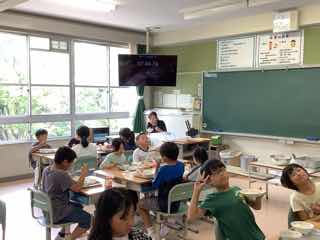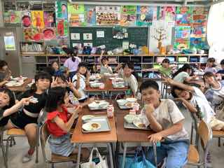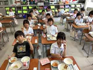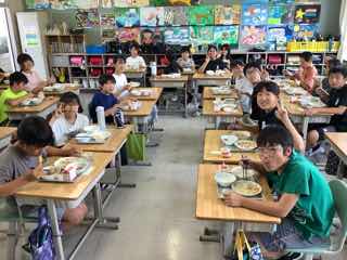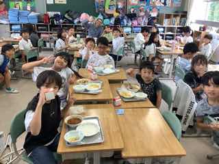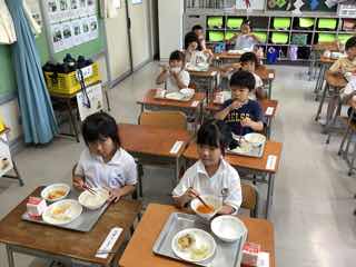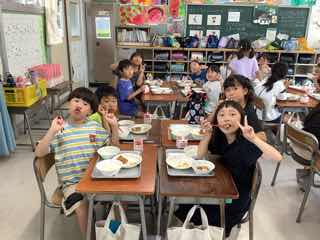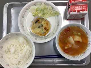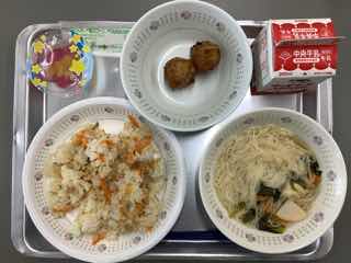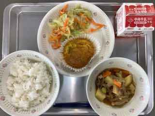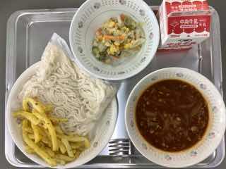 今日のメニューは、フライドポテトのりしお、ソフト麺ミートソース、コーンサラダです。