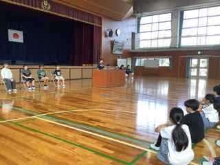 鶴小校区コミュニティ推進協議会のカローリング大会が行われました。6年生中心に参加を呼びかけ、老人会をはじめ地域の方とカローリングを楽しむことができました。カローリングは、オリンピック種目でもあるカーリングを屋内でも手軽に行えるように考えられたニュースポーツです。