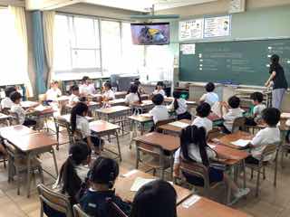 先週は、1年生のどのクラスも虫取り網をもって、校庭の生き物を見つけにいきました。