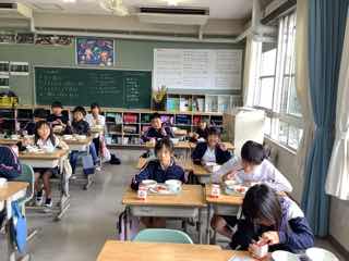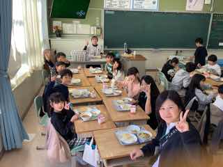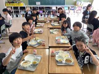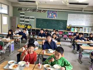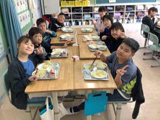 美味しい給食で笑顔いっぱいになっています。午後からも元気よくがんばれますね。