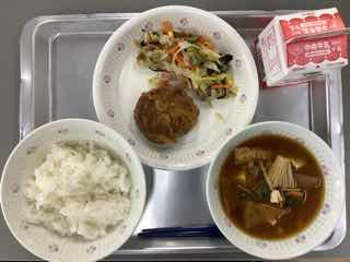 実は、修学旅行先の宿、二日目の昼にハンバーグを食べており、今日の給食もまさかのハンバーグ。