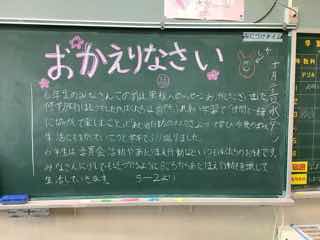 教室には、5年生からのお帰りメッセージがありました。