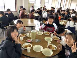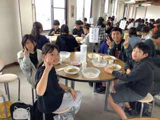 「マーボー豆腐が好き」と教えてくれる子もいました。ご飯を増やす列もできていました。