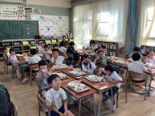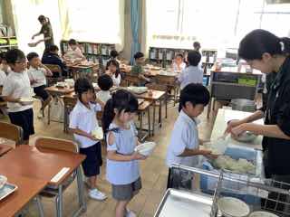 今日は、1の1におじゃましました。給食準備がとても丁寧です。
