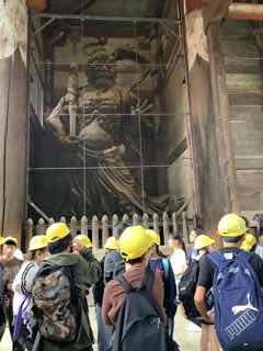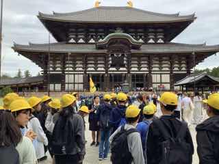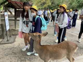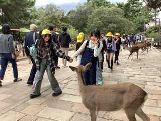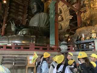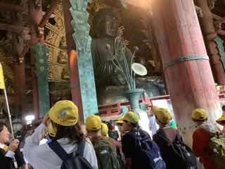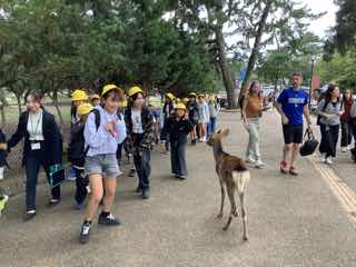 奈良公園を通って東大寺大仏殿へ行ってきました。シカの多さや大仏の大きさにびっくりしていました。