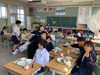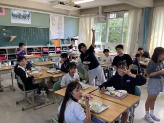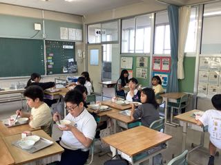 今日は5年1組におじゃましました。12時35分に教室へ行くと、もう静かに食べ始めていました。給食の準備は4分くらいで終わるとのこと。とても速いです。協力体制が素晴らしいですね。