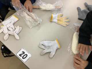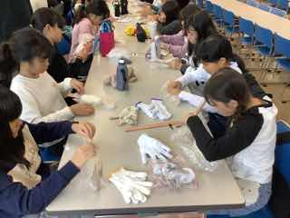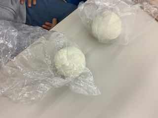 つぶしたお米をビニール袋からはがしながら、球状にしていきます。