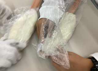 5分かけて、ビニール袋の中のお米をつぶしていきます。