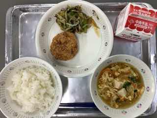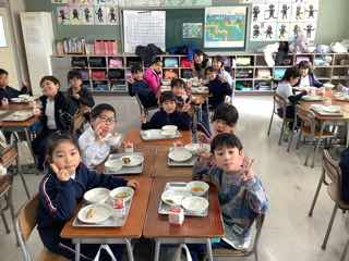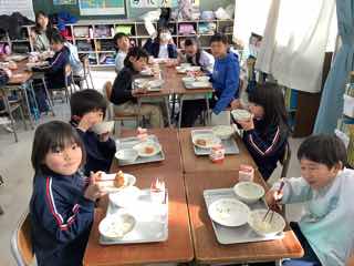 今日は、2の1におじゃましました。かき玉汁も、コロッケも、みんな進んでお代わりしていました。