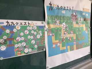 2年生の算数で、九九を集中して復習しています。自分たちのキャラクターが進み、ゲームをクリアする楽しみがあります。子供たちの頑張りがすごいと、担任の先生が喜んでいましたよ。