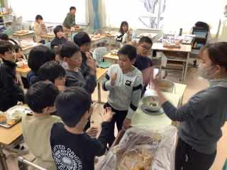 初の提供のため、味も見た目も興味津々の子供たち。