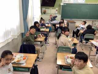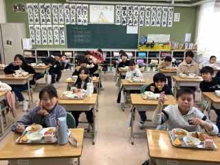放送を静かに聞きながら、美味しい給食を楽しんでいました。
