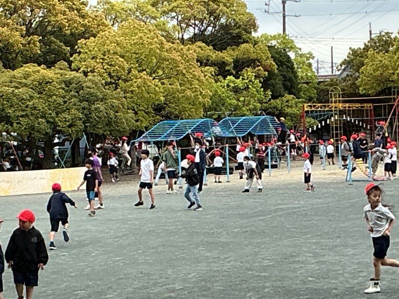 今日のけやきタイムには、たくさんの子が運動場で元気いっぱい体を動かしました。遊具遊びやドッジボール、サッカーなどを楽しんでいました。