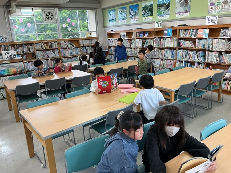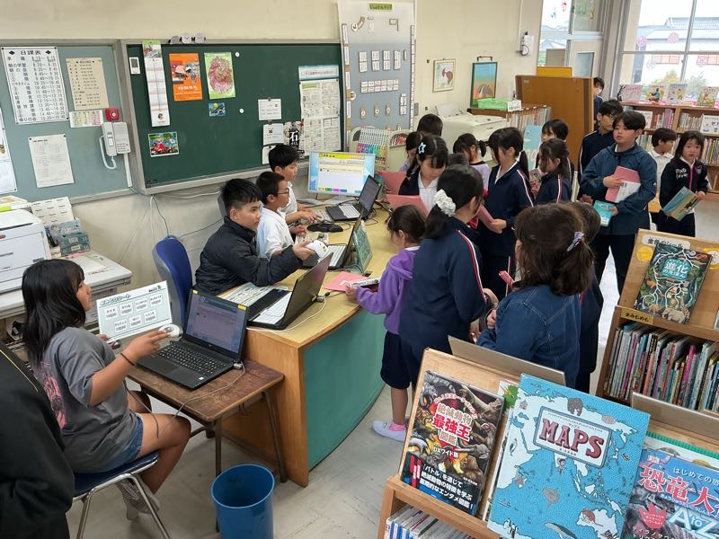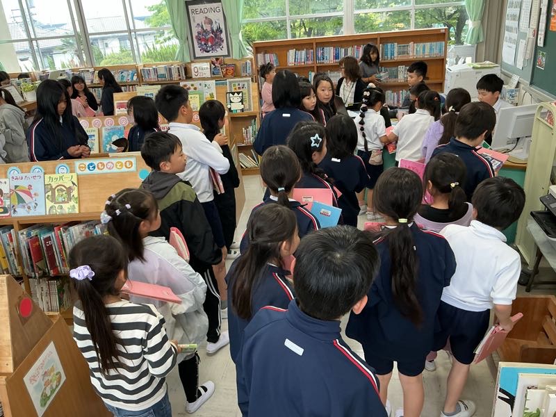 今日の図書館は大にぎわいでした。本の貸し出しのために、長い列ができていました。