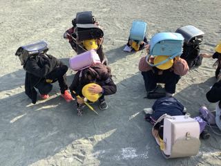 今日の5時間目に通学団会を行い新しい班になりました。その後下校し、途中で地震がきたと想定してシェイクアウト訓練を行いました。この機会に、下校途中や家に居る時など、様々な場所で地震が起こった場合を想定してどうしたら命を守れるか、各ご家庭で子供さんと話をされるとよいと思います。