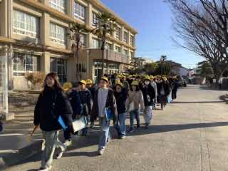 今日は、6年生の校外学習です。西尾市の歴史を学ぶために、西尾市歴史公園に向かいます。