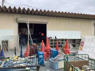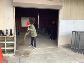 体育館では、会場の仕上げと外回りの清掃です。