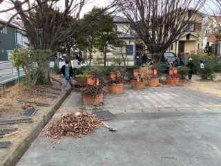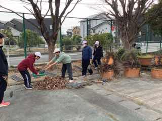 側溝の落ち葉や土を上げたりしました。