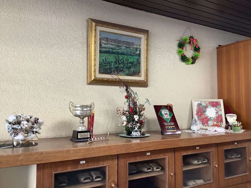 正面玄関は、地域の入倉さんが冬バージョンの写真にかえてくださいました。