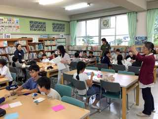 また、図書ボランティアさんの読み聞かせも行われています。訪問する学年に合わせた内容の本をボランティアさんが選んで読んでくださっています。