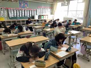 また、お話の世界に自分たちも入り込む楽しさも味わいました。その後、朝の会です。元気な校歌や、けやき音楽祭で歌う歌が聞こえてきました。